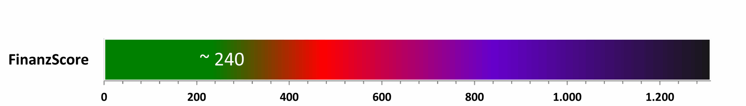 Auch hier gilt: je höher der FinanzScore, desto schlechter ist die Finanzsituation des Unternehmens und desto schlechter die Werthaltigkeit der Aktie. Bis etwa 240 Punkte ist die Finanzsituation gut, danach wird es immer kritischer.