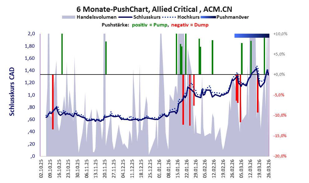 Die Pushstärke ist umso höher, je stärker die Kurse vom durchschnittlichen Verlauf abweichen und daher ein Verdacht auf Kursmanipulation besteht.