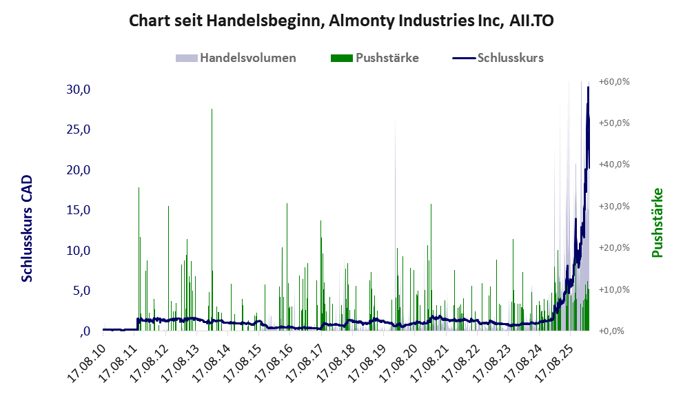Über diese Aktie berichtet Apaton. Das tägliche Handelsvolumen betrug an obiger Börse während der letzten drei Monate bis Berichtsdatum: 1.047.985 Stück, das sind 0,4% der ausgegebenen Aktien. Bei Almonty Industries wird bei schwachen operativen Geschäft zu viel Geld verbrannt.