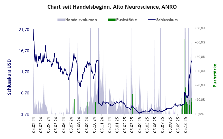 Vor dem Hintergrund einer Finanzlage, die hauptsächlich aus Cash besteht und sonst nichts zu bieten hat, ist die Begeisterung der Analysten wenig einsichtig. Bei realer Betrachtung der Lage handelt es sich wieder um eine Pharmaaktienstory, die gute Aussichten auf weiteren steilen Kursanstieg haben kann, aber am Ende in sich zusammenbrechen wird. Alto Neuroscience hat ein schwaches Gesamtscoring und ist eine günstige Aktie mit einem starken Kursverlust. Das Gesamtvermögen ist groß, die Vermögenswerte scheinen nicht werthaltig zu sein, der Umsatz ist nicht existent, die Ertragslage extrem verlustreich, die Geldverbrennung ziemlich hoch.