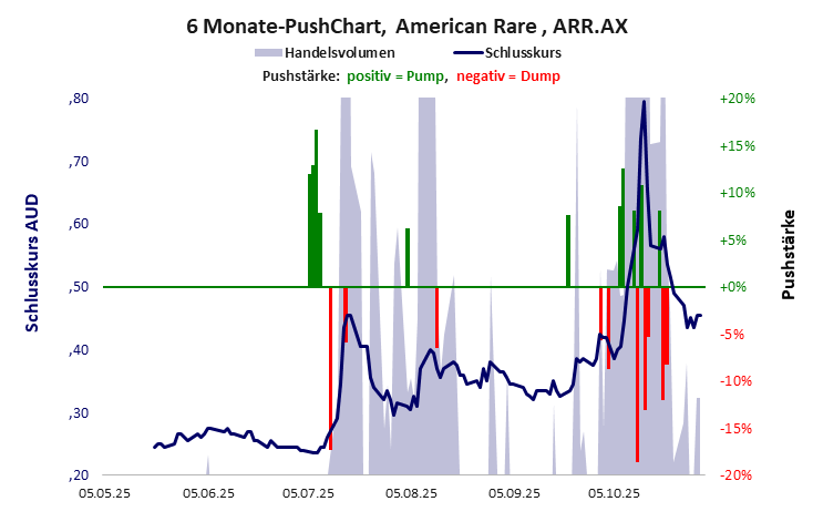 Der Aktienkurs von einem kleinen Mittelständler, der fast ausschließlich aus Cash besteht, steigt pushgetrieben. Das Unternehmen hat keine Substanz. American Rare hat ein mäßiges Gesamtscoring und ist ein kleiner Pennystock mit Kursgewinn. Das Gesamtvermögen ist überschaubar, die Vermögenswerte scheinen sehr werthaltig zu sein, der Umsatz ist nicht existent, die Ertragslage extrem verlustreich, die Geldverbrennung ziemlich hoch.