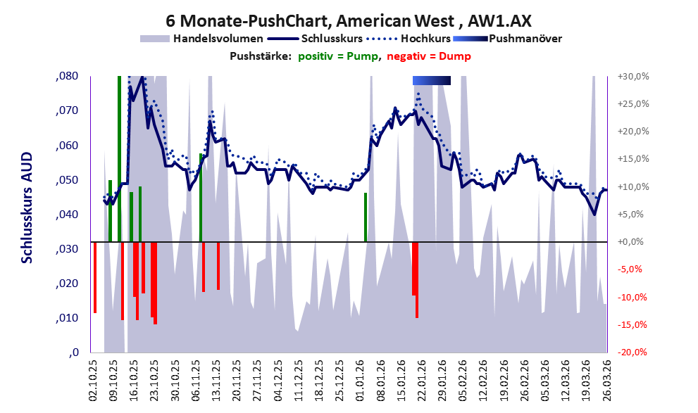 Über diese Aktie berichtet Goldinvest. Das tägliche Handelsvolumen betrug an obiger Börse während der letzten drei Monate bis Berichtsdatum: 4.409.066 Stück, das sind 0,4% der ausgegebenen Aktien. In Aktien der Klasse V darf man grundsätzlich nicht investieren. Es gibt keinen ordentlichen Geschäftsbetrieb. Die Aktie hat nur den Zweck, mit Pushmanövern oder Algotrading an der Börse Kasse zu machen.