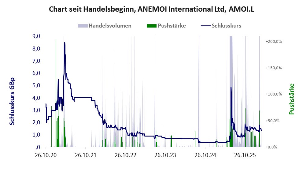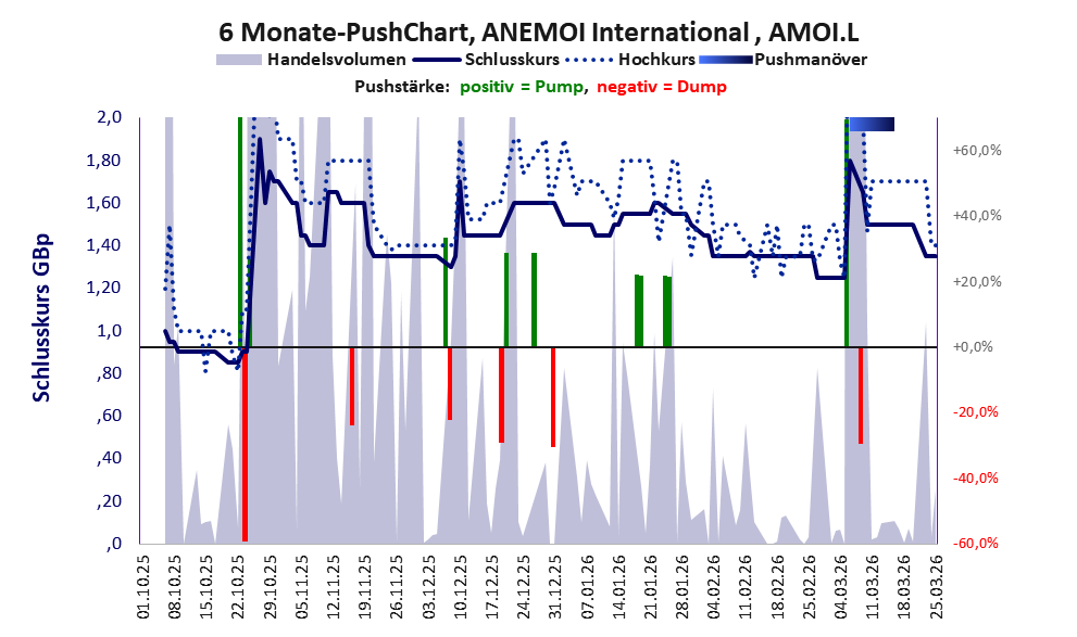 Bei dieser Aktie, über die w:o berichtet, liegt das Inkassomodell vor und es gibt 7 Pump & Dump-Manöver. Das tägliche Handelsvolumen betrug an obiger Börse während der letzten drei Monate bis Berichtsdatum: 379.151 Stück, das sind 0,2% der ausgegebenen Aktien. In Aktien der Klasse V darf man grundsätzlich nicht investieren. Es gibt keinen ordentlichen Geschäftsbetrieb. Die Aktie hat nur den Zweck, mit Pushmanövern oder Algotrading an der Börse Kasse zu machen.