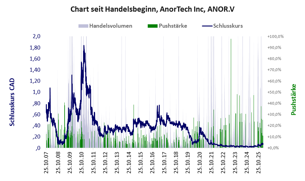Über diese Aktie berichtet w:o. Das tägliche Handelsvolumen betrug an obiger Börse während der letzten drei Monate bis Berichtsdatum: 133.930 Stück, das sind 0,1% der ausgegebenen Aktien. In Aktien der Klasse V darf man grundsätzlich nicht investieren. Es gibt keinen ordentlichen Geschäftsbetrieb. Die Aktie hat nur den Zweck, mit Pushmanövern oder Algotrading an der Börse Kasse zu machen.