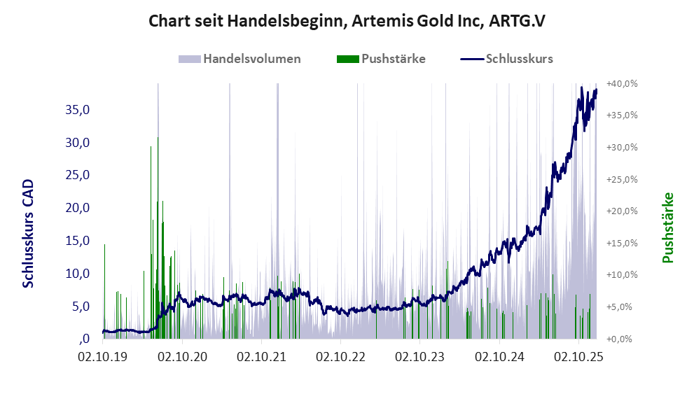 Artemis Gold ist ein Konzern mit einer Pusher-Aktie der Klasse II und den Eckdaten: