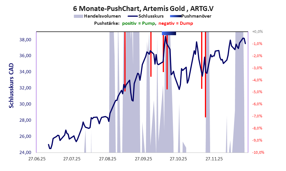Die Pushstärke ist umso höher, je stärker die Kurse vom durchschnittlichen Verlauf abweichen und daher ein Verdacht auf Kursmanipulation besteht.