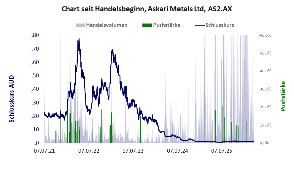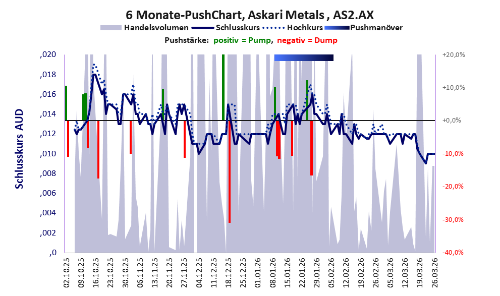 Über diese Aktie berichtet Axino. Das tägliche Handelsvolumen betrug an obiger Börse während der letzten drei Monate bis Berichtsdatum: 2.053.859 Stück, das sind 0,3% der ausgegebenen Aktien. In Aktien der Klasse V darf man grundsätzlich nicht investieren. Es gibt keinen ordentlichen Geschäftsbetrieb. Die Aktie hat nur den Zweck, mit Pushmanövern oder Algotrading an der Börse Kasse zu machen.