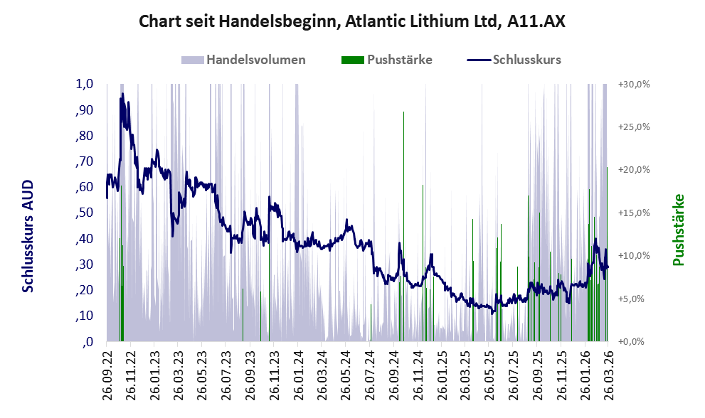 Über diese Aktie berichtet axino. Das tägliche Handelsvolumen betrug an obiger Börse während der letzten drei Monate bis Berichtsdatum: 493.267 Stück, das sind 0,1% der ausgegebenen Aktien. Bei Atlantic Lithium fehlt ein operativer Geschäftserfolg, stattdessen wird das Geld der Investoren im großen Stil verbrannt.