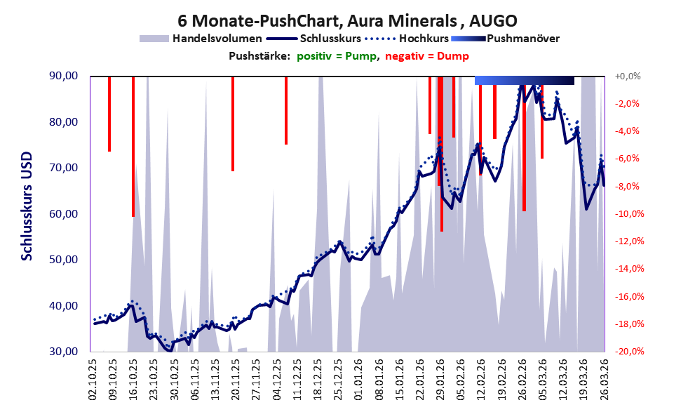 Die Pushstärke ist umso höher, je stärker die Kurse vom durchschnittlichen Verlauf abweichen und daher ein Verdacht auf Kursmanipulation besteht.