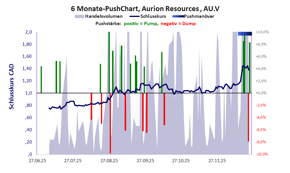 Die Pushstärke ist umso höher, je stärker die Kurse vom durchschnittlichen Verlauf abweichen und daher ein Verdacht auf Kursmanipulation besteht.