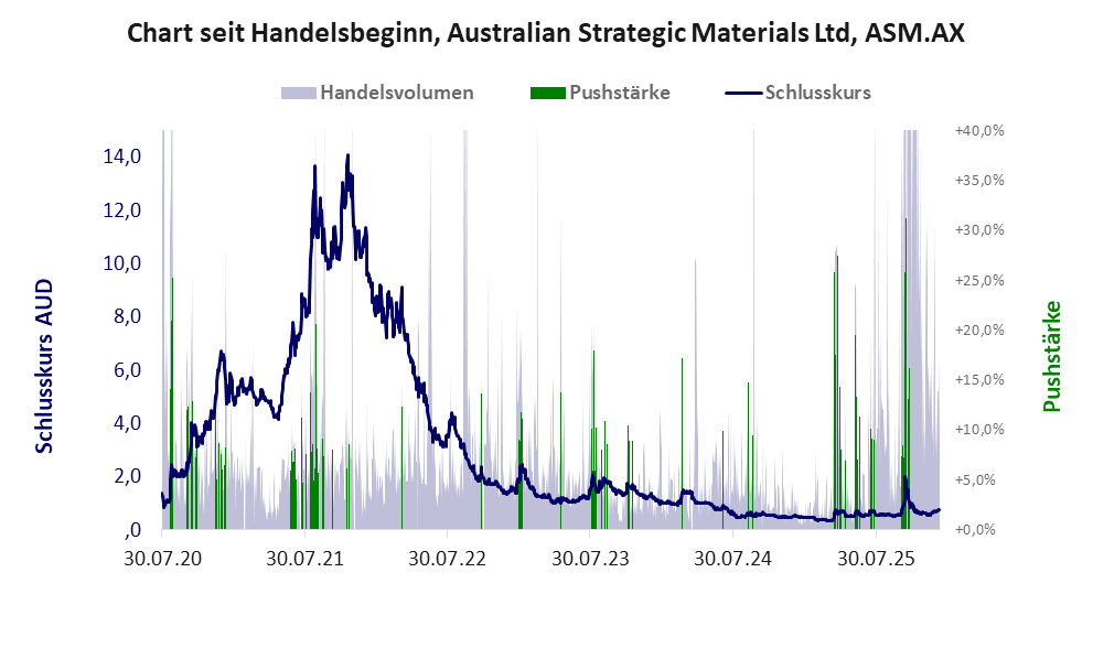 Die Pushstärke ist umso höher, je stärker die Kurse vom durchschnittlichen Verlauf abweichen und daher ein Verdacht auf Kursmanipulation besteht.