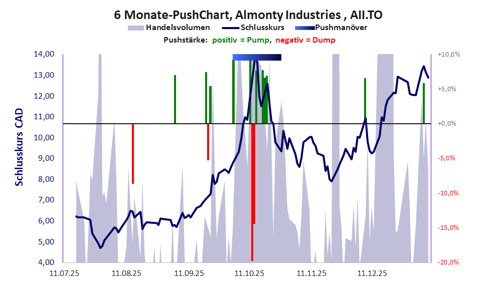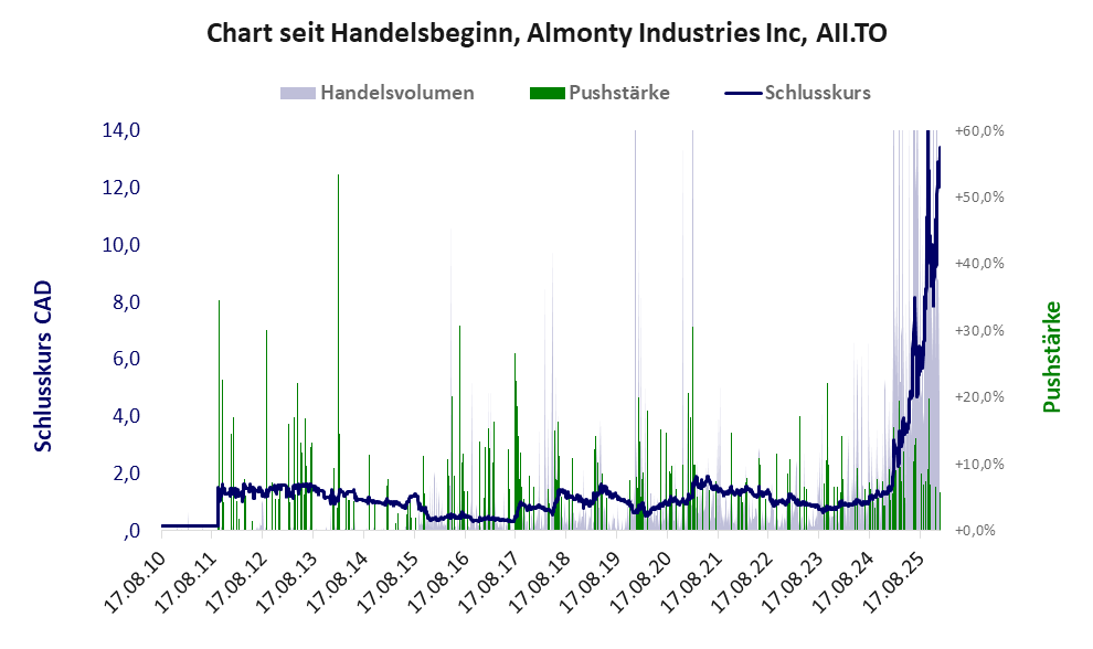 Die Aktie eines Bergbauunternehmens, die in 2025 einen gigantischen Kursanstieg verzeichnete und simplywall dem Unternehmen eine gute Zukunftsaussicht bescheinigt. Die Finanzdaten mahnen jedoch zur Vorsicht: Almonty verdient noch nichts und die Aktie wird von Apaton massiv gepusht. Der Kurs ist geprägt von teils starken Abverkäufen und der Kursanstieg in 2025 ist stark spekulativer Natur. Es darf weiter spekuliert werden. Entweder erreicht der Abbau tatsächlich wirtschaftlichen Erfolg oder es folgt der Kurseinbruch wie in so vielen anderen Fällen.