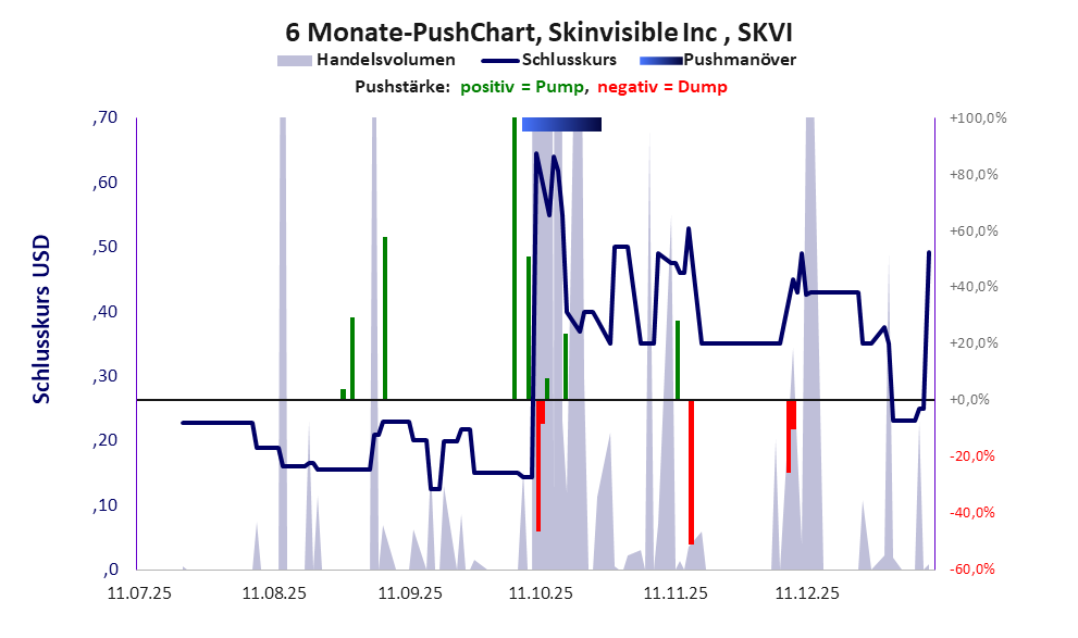 eine völlig wertlose Firmenhülle, deren Kurs immer wieder und selbst in jüngster Zeit gepusht wurde. Reine Gaukelei. *** Bei dieser Aktie liegt das „Inkassomodell“ vor. *** Es gab 15 Pump&Dump-Manöver.