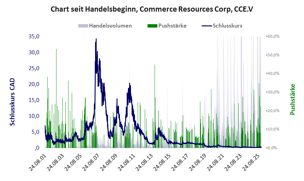 Dieser Aktie liegt das „Refreshmodell“ zu Grunde. Eine Durchsicht aller Geschäftsberichte würde recht sicher zeigen, dass das Unternehmen keinen Umsatz und Profit erzielt und die gesamten Explorationskosten unter „Aktiva“ verbucht. Das heißt, während aller Jahre wurde nichts gefunden, sondern die Investorengelder wurden für erfolglose Explorationsarbeiten verbrannt. Die bescheidene Exploration dient lediglich als Grundlage zur medialen Vermarktung von Erfolgsaussichten, auf eine große Lagerstätte zu stoßen, und damit das nächste Pushmanöver zu befeuern.