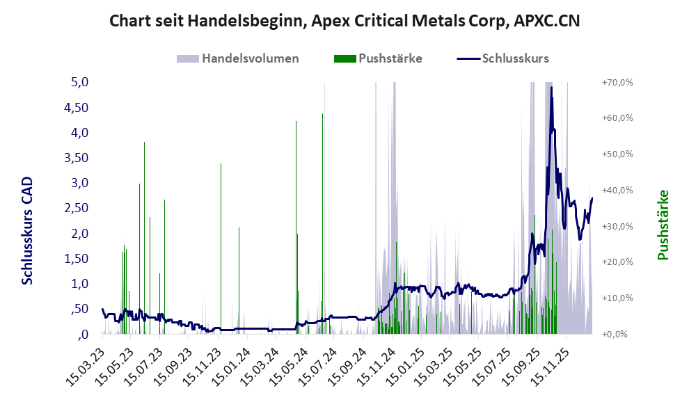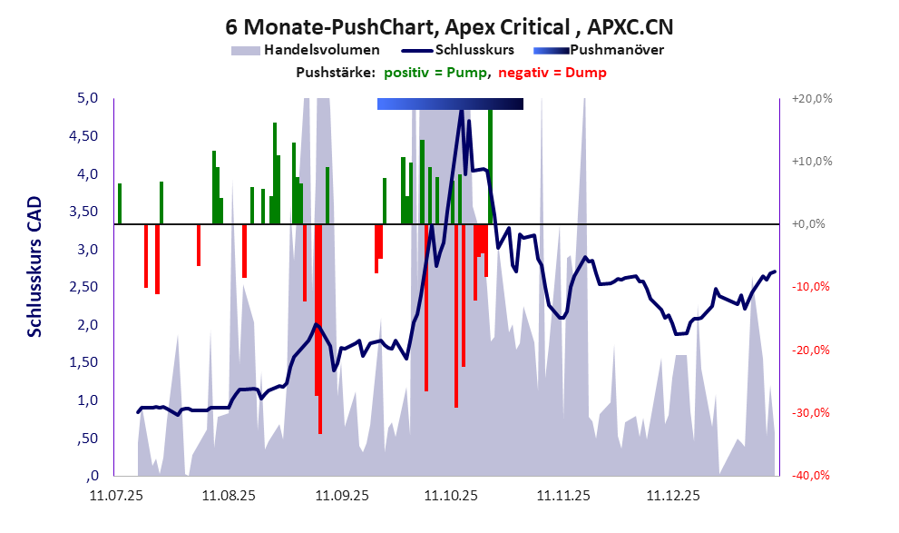 Die Finanzdaten zeigen ein „schwarzen Loch“. Der Aktienkurs wird seit Okt. 2024 gepusht. Apex ist mit Zimtu verflochten, für die Rockstone als Medienplattform aktiv ist.