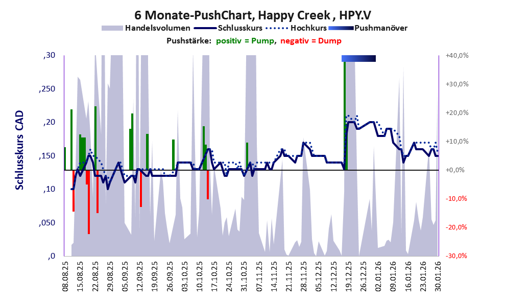 Bei dieser Aktie liegt das Inkassomodell vor und es gibt 1 Pump & Dump-Manöver.