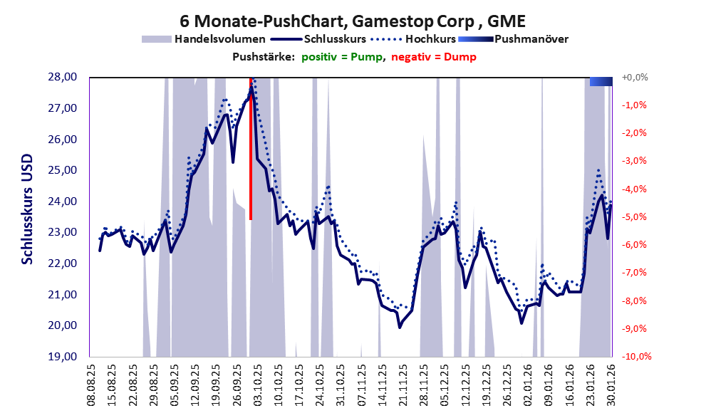 Bei dieser Aktie, über die BörsenNews berichtet, gibt es 6 Pump & Dump-Manöver.
