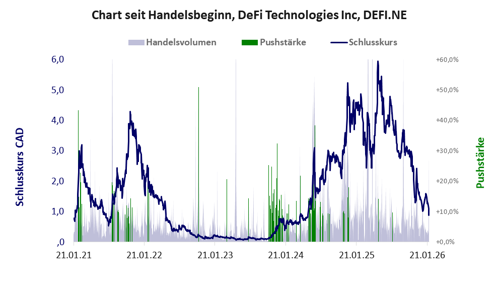 Der Aktienkurs des unprofitablen Unternehmens ist vom großen Pushmanöver der Jahre 2024 und 2025 geprägt.