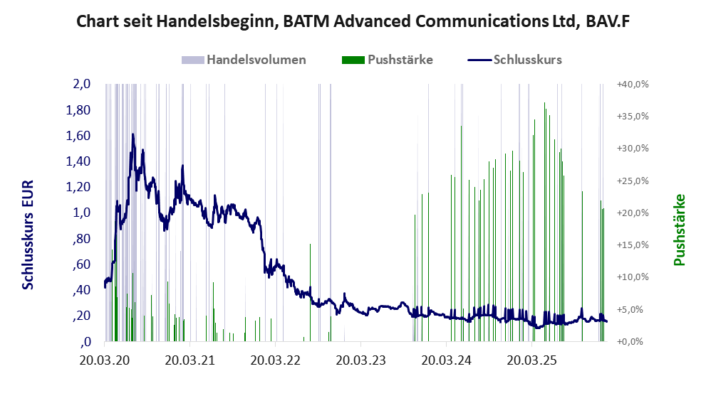 Das tägliche Handelsvolumen während der letzten drei Monate (bis Berichtsdatum) betrug 126 Stück, das sind 0,0% der ausgegebenen Aktien.