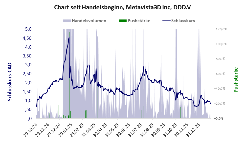 Diese Aktie diente nur zum Pump and Dump, der im Jan. 2025 erfolgte. Anschließend folgte ein neuer Kursanstieg auf leisen Sohlen bis Anfang Aug. 2025, ehe der wieder zu erwartende Kursabstieg eintrat.