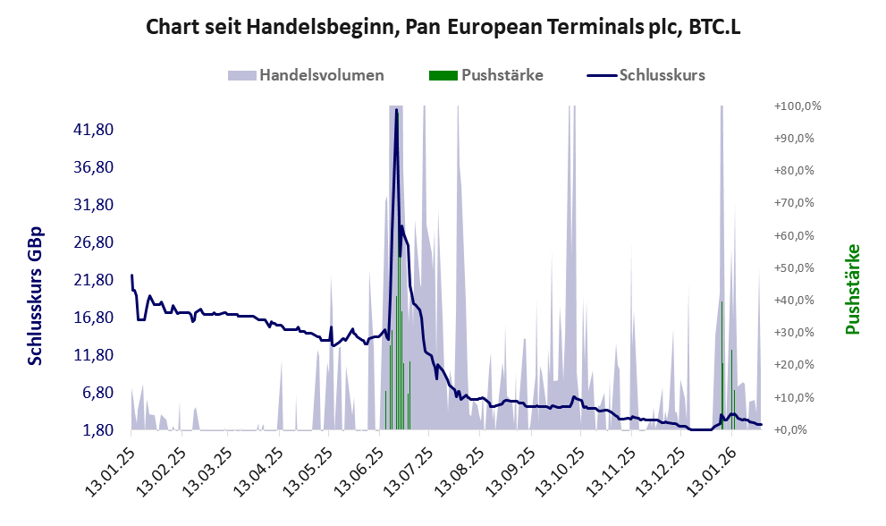 Pan European Terminals entstand aus der Vinanz Ltd, deren Scoring noch schlechter war als das der Pan European. Mit dem Namenswechsel wurde die Aktie neu aufgelegt und der Kurs 100:1 konsolidiert. Werthaltigkeit liegt in keinem Fall vor.