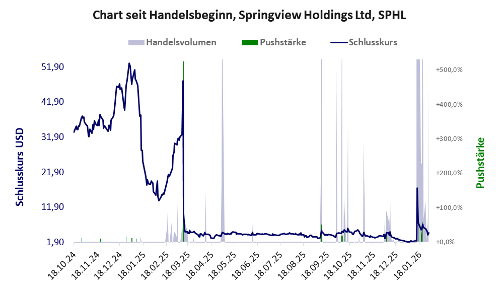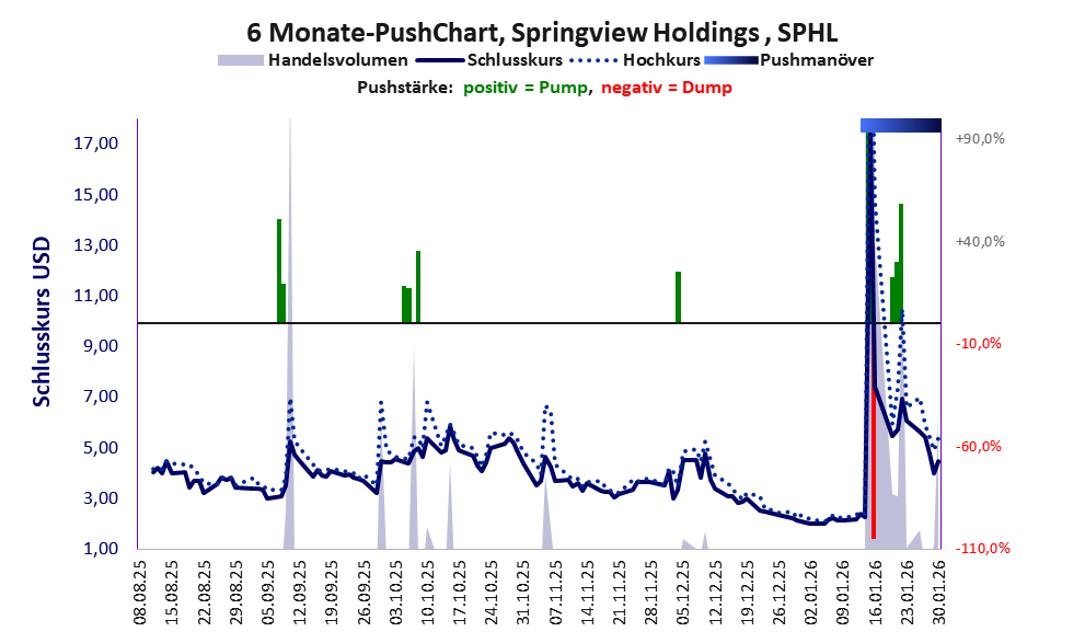 Springview zählt zu einer Gruppe chinesischer Firmen deren Aktien in den USA oder auf den Antillen beheimatet sind und die auf der Warnliste der BaFin stehen. Der Aktienkurs dieser Firmen zeigt schlagartig durchgeführte Dumps, mit denen die Anleger (oft in Chatgruppen organisiert) um ihr Geld betrogen wurden. Die Geschichte, wie abgezockt wird, steht unter Am Handy abgezockt.