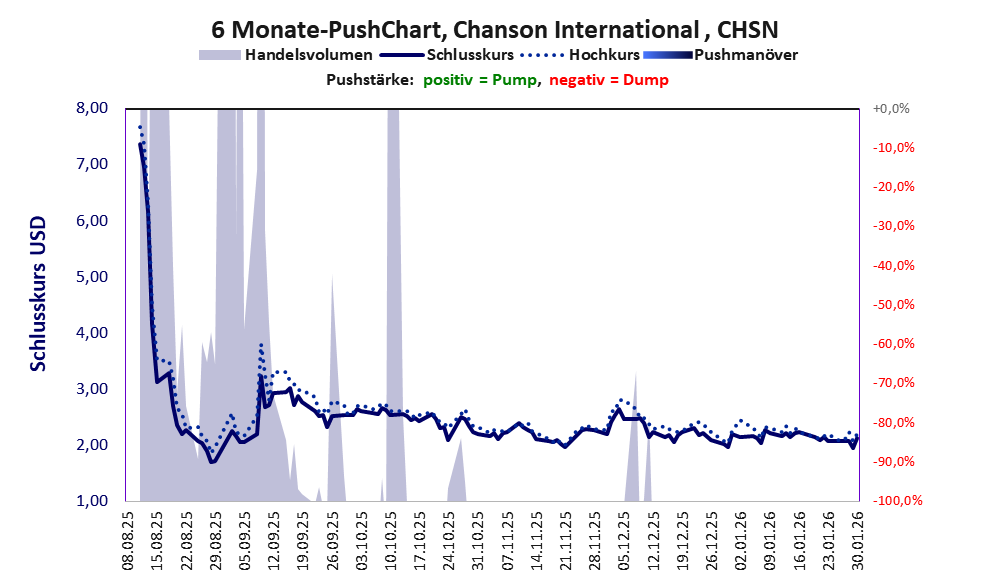Chanson zählt zu einer Gruppe chinesischer Firmen deren Aktien in den USA oder auf den Antillen beheimatet sind und die auf der Warnliste der BaFin stehen. Der Aktienkurs dieser Firmen zeigt schlagartig durchgeführte Dumps, mit denen die Anleger (oft in Chatgruppen organisiert) um ihr Geld betrogen wurden. Die Geschichte, wie abgezockt wird, steht unter Am Handy abgezockt.