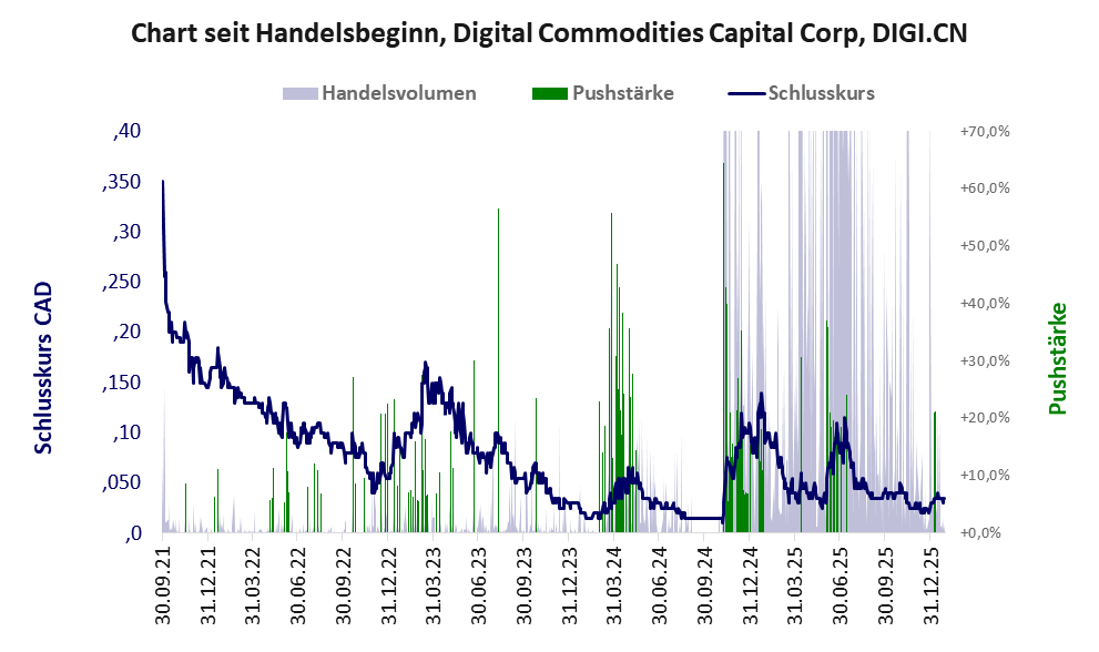 Typische Pusheraktie im Endstadium, deren Kursbildung im Algotrading-Modus erfolgt und deren PushScore alles besagt.