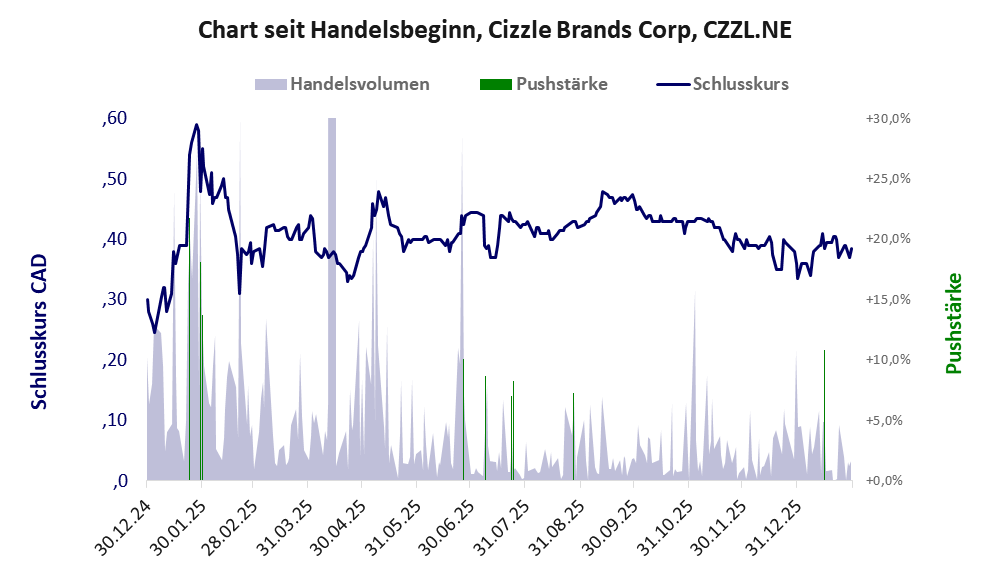 Cizzle Brands wurde Anfang 2025 mit nichts außer 50.000 CAD in Cash von unbekannten Newcomern gestartet. Die Aktie ist uninteressant.