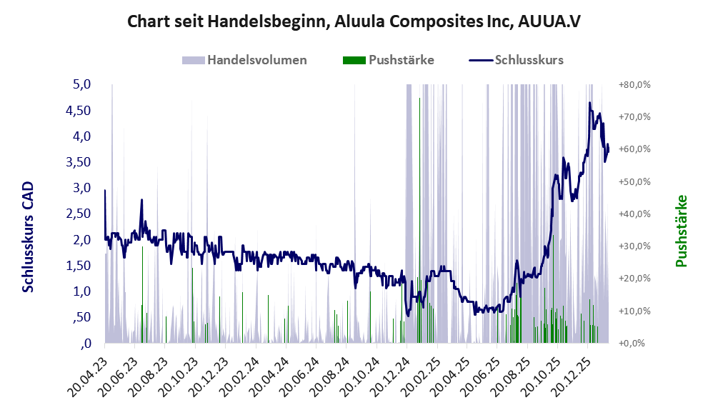 Aluula Composites ist ein MiniKMU mit einer Pusher-Aktie der Klasse II und den Eckdaten: