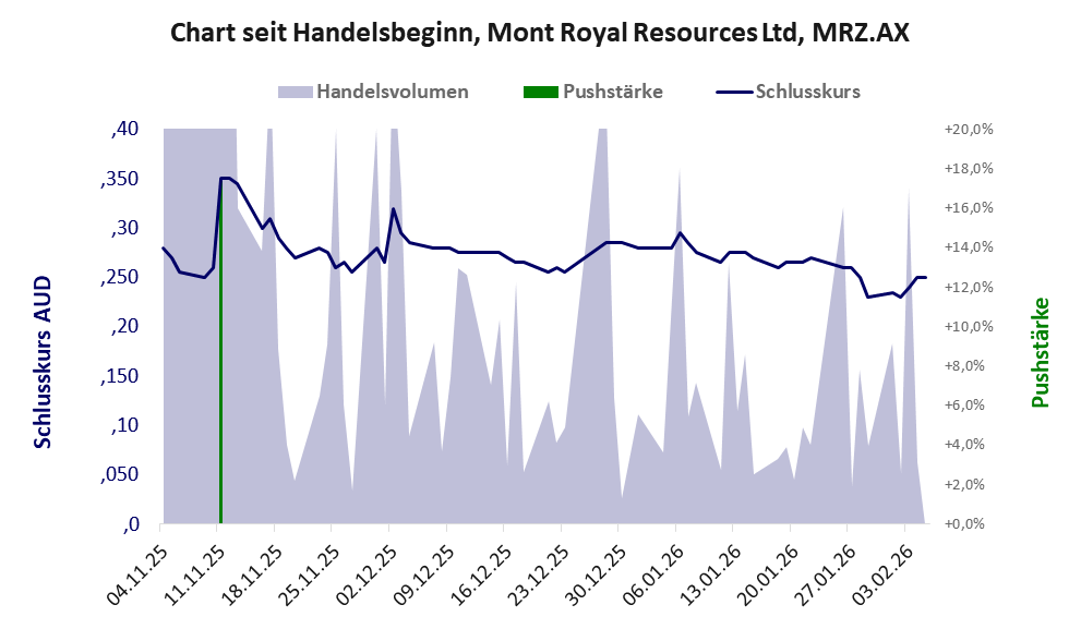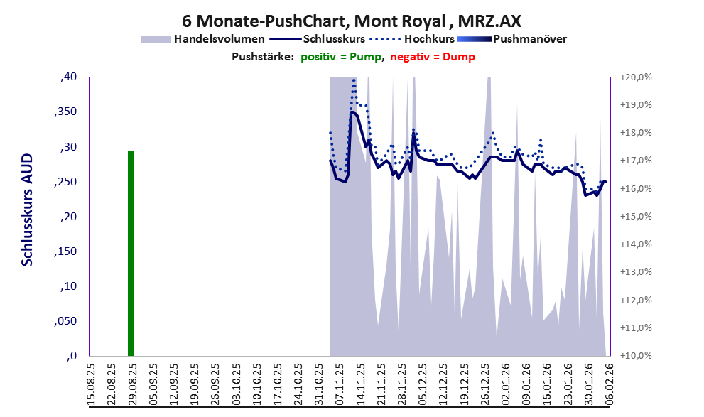Das tägliche Handelsvolumen während der letzten drei Monate (bis Berichtsdatum) betrug 602.653 Stück, das sind 0,3% der ausgegebenen Aktien.
