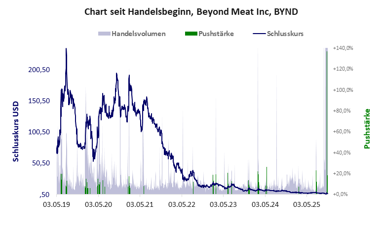 Beyond Meat hat ein schwaches Gesamtscoring und ist eine billige Aktie mit praktisch einem Totalverlust. Das Gesamtvermögen ist groß, die Vermögenswerte scheinen werthaltig zu sein, der Umsatz ist sehr groß, die Ertragslage sehr verlustreich, die Geldverbrennung sehr hoch.
