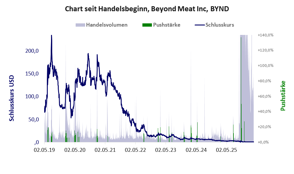 Bei dieser Aktie, über die Apaton berichtet, liegt das Inkassomodell vor. Das tägliche Handelsvolumen betrug an obiger Börse während der letzten drei Monate bis Berichtsdatum: 39.093.166 Stück, das sind 8,6% der ausgegebenen Aktien. Die hohe Geldverbrennung in der Investitionsphase von Beyond Meat hat sich gelohnt. Die Produktion wurde aufgenommen, ist aber noch unprofitabel.