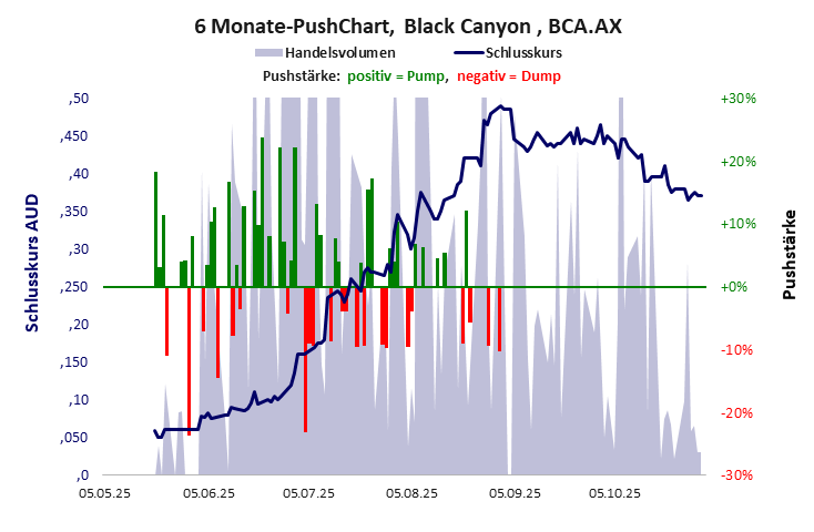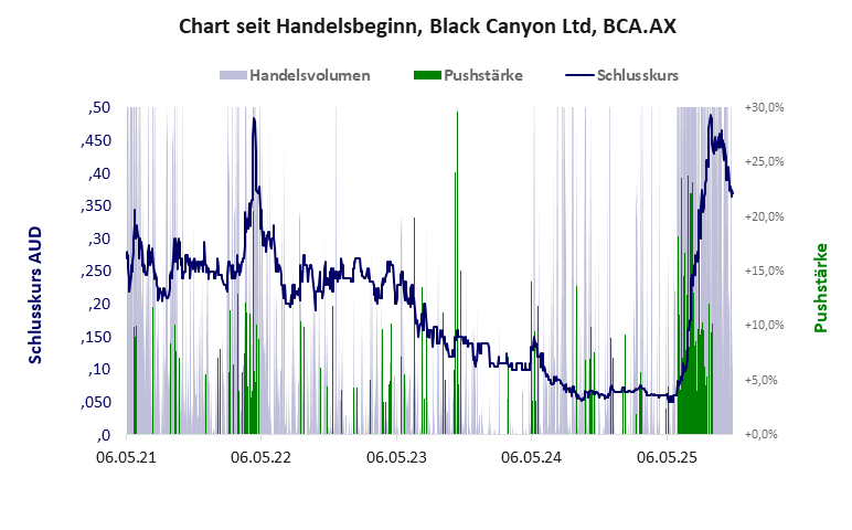 Black Canyon hat ein akzeptables Gesamtscoring und ist ein kleiner Pennystock mit Kursgewinn. Das Gesamtvermögen ist überschaubar, die Vermögenswerte scheinen nicht werthaltig zu sein, der Umsatz ist nicht existent, die Ertragslage schlecht, die Geldverbrennung ziemlich hoch.