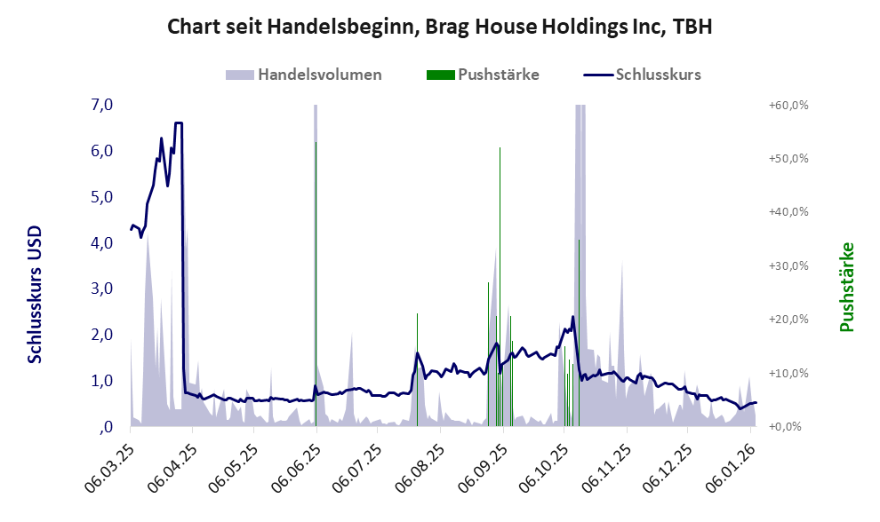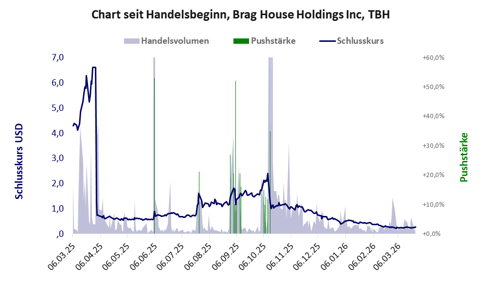 Brag House ging am 14.03.2025 mit Tam-Tam an der Nasdaq in den Handel. Brag House gibt vor, Spiel-Turniere für die Generation Z zu veranstalten. Es bestehen erhebliche Zweifelkeine Doku über Events, kaum Einnahmen (Quellen unbekannt), keine Substanz, veraltete SEC-Filings, miserable, nach Fake riechende Website und eine indiskutable Investor Presentation, derentwegen niemand investieren dürfte. Dennoch investierte Kingswood Capital Partners LLC im März 2025 nominal 5,9 Mio. USD. Über das Warum darf spekuliert werden. Was wird kommen?