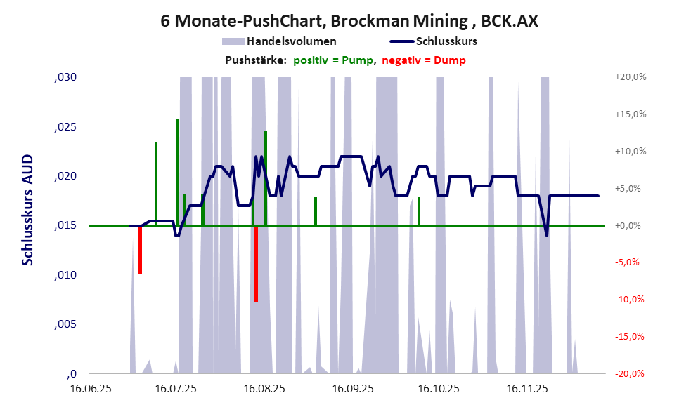 Die Pushstärke ist ein Maß, wie stark der Handelskurs der jüngsten Zeit vom Durchschnitt der Vergangenheit abweicht, und belegt somit Pushaktivitäten