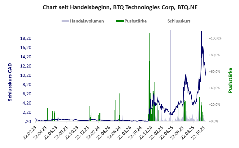 Mit zwei Patenten ( BTQ Technologies hat ein schlechtes Gesamtscoring und ist eine günstige Aktie mit Kursgewinn. Das Gesamtvermögen ist überschaubar, die Vermögenswerte scheinen nicht vorhanden zu sein, der Umsatz ist überschaubar, die Ertragslage extrem verlustreich, die Geldverbrennung extrem hoch.