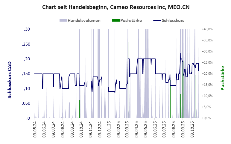 Cameo besitzt nichts, außer reichlich Akteure, der Aktienkurs taugt nichts, das Scoring ist schlecht – und damit geht man ins Zweitlisting an der FWB, um … ? Cameo Resources hat ein kritisches Gesamtscoring und ist ein mickriger Pennystock mit Kursgewinn. Das Gesamtvermögen ist karg, die Vermögenswerte scheinen sehr werthaltig zu sein, der Umsatz ist nicht existent, die Ertragslage extrem verlustreich, die Geldverbrennung sehr hoch.