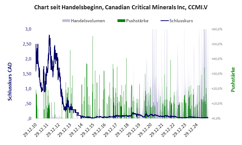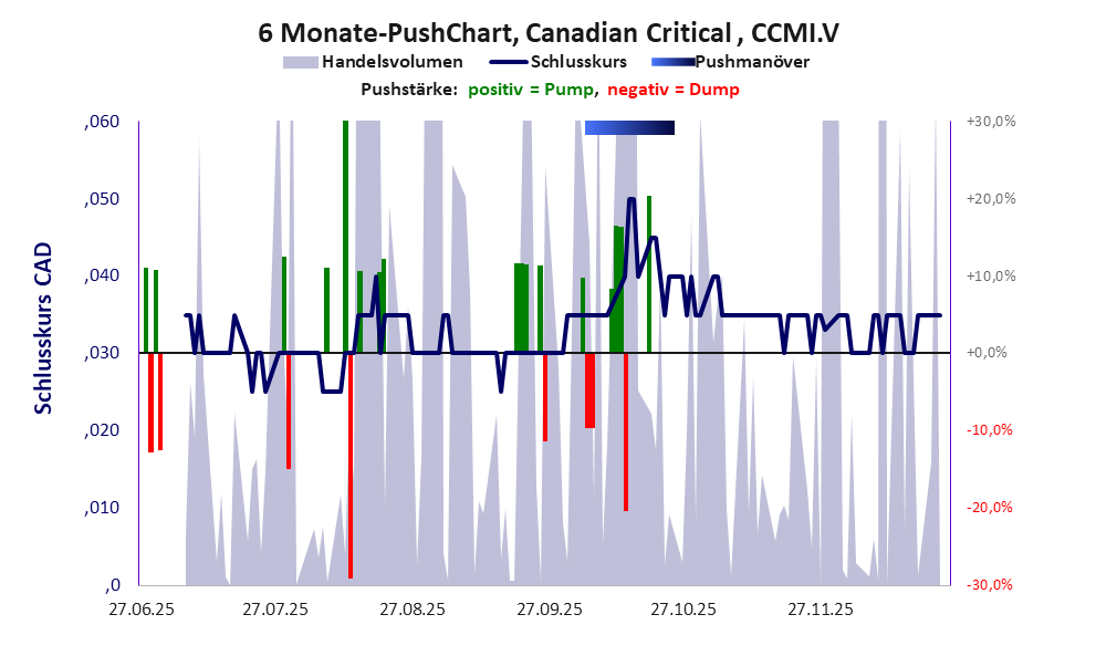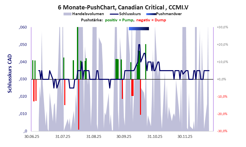 Bei dieser Aktie liegt das „Inkassomodell“ vor, bei dem der Aktienkurs zu Beginn der Geschichte sein Allzeithoch hat. Ab dann verkaufen die Akteure nach und nach ihre billigst erworbenen Aktien, so dass der Kurs in verhältnismäßig kurzer Zeit abstürzt. Danach dümpelt der Aktienkurs in den meistn Fällen nahe null dahin und die Aktie dient nur noch kleineren, dennoch gewinnbringenden Pushmanövern und in vielen Fällen dem Algotrading. Dem ersten Einbruch nachfolgende größere Pushmanöver sind aber nicht ausgeschlossen.