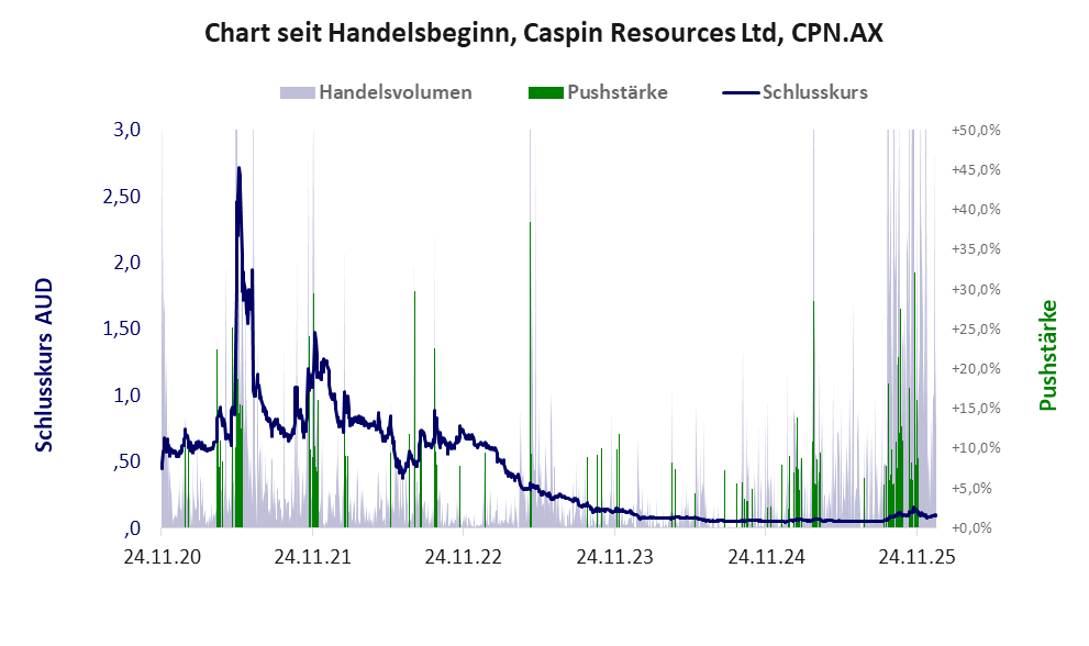 Caspin Resources ist ein Winzling mit einer Pusher-Aktie der Klasse III und den Eckdaten: