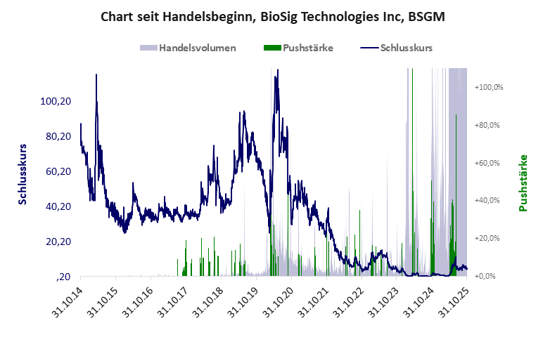 BioSig Technologies hat ein inakzeptables Gesamtscoring und ist ein mickriger Pennystock mit praktisch einem Totalverlust. Das Gesamtvermögen ist karg, die Vermögenswerte scheinen noch werthaltig zu sein, der Umsatz ist mickrig, die Ertragslage extrem verlustreich, die Geldverbrennung extrem hoch.