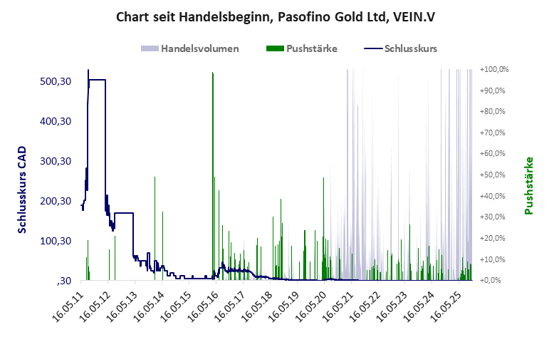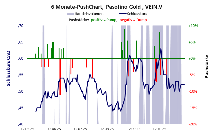 Pasofino Gold hat ein schlechtes Scoring in Klasse D. Es ist ein Pennystock mit praktisch einem Totalverlust. Das Gesamtvermögen ist karg, die Vermögenswerte scheinen nicht vorhanden zu sein, der Umsatz ist nicht existent, die Ertragslage extrem verlustreich, die Geldverbrennung extrem hoch.