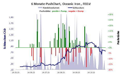 Die Pushstärke ist ein Maß, wie stark der Handelskurs der jüngsten Zeit vom Durchschnitt der Vergangenheit abweicht, und belegt somit Pushaktivitäten