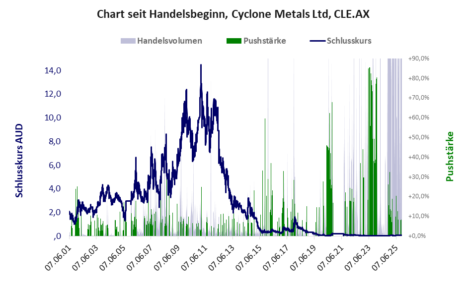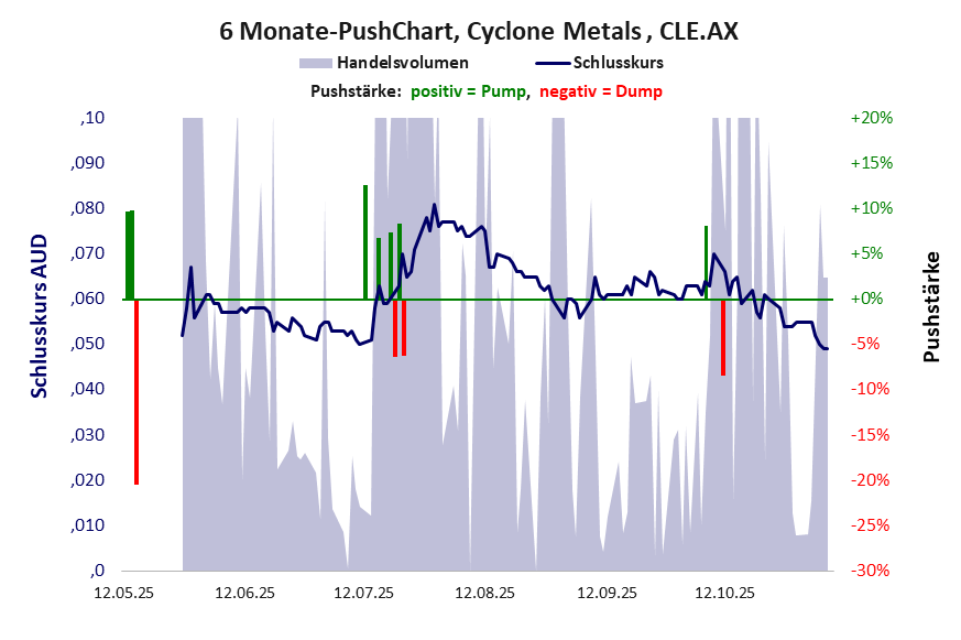 Cyclone Metals hat ein kritisches Gesamtscoring und ist ein mickriger Pennystock mit praktisch einem Totalverlust. Das Gesamtvermögen ist überschaubar, die Vermögenswerte scheinen werthaltig zu sein, der Umsatz ist nicht existent, die Ertragslage extrem verlustreich, die Geldverbrennung extrem hoch.
