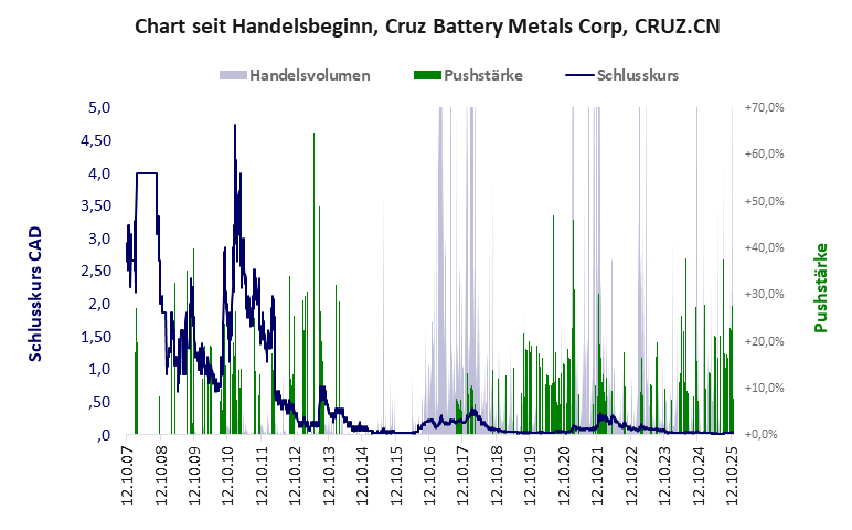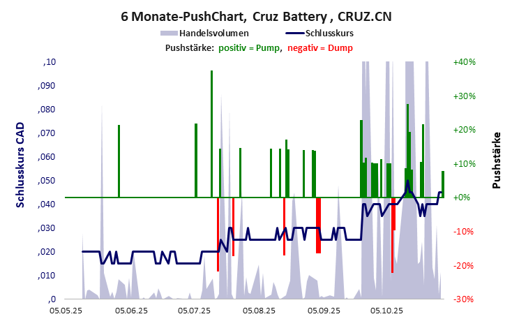 Cruz Battery hat ein kritisches Gesamtscoring und ist ein mickriger Pennystock mit praktisch einem Totalverlust. Das Gesamtvermögen ist überschaubar, die Vermögenswerte scheinen sehr werthaltig zu sein, der Umsatz ist nicht existent, die Ertragslage extrem verlustreich, die Geldverbrennung extrem hoch.