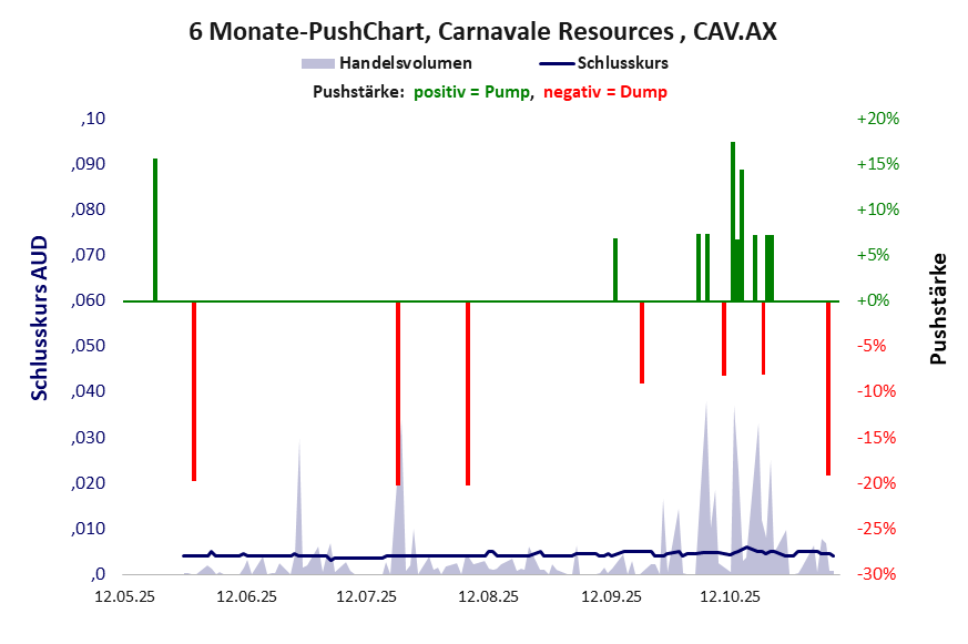 Die Pushstärke ist ein Maß, wie stark der Handelskurs der jüngsten Zeit vom Durchschnitt der Vergangenheit abweicht, und belegt somit Pushaktivitäten