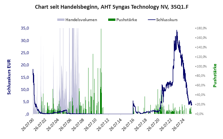 AHT Syngas hat ein schlechtes Scoring in Klasse D. Es ist eine billige Aktie mit einem riesigen Kursverlust. Das Gesamtvermögen ist überschaubar, die Vermögenswerte scheinen nicht vorhanden zu sein, der Umsatz ist überschaubar, die Ertragslage verlustreich, die Geldverbrennung extrem hoch.