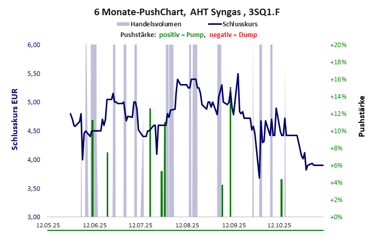 Die Pushstärke ist ein Maß, wie stark der Handelskurs der jüngsten Zeit vom Durchschnitt der Vergangenheit abweicht, und belegt somit Pushaktivitäten