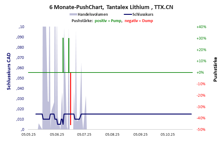 Tantalex Lithium hat ein schlechtes Gesamtscoring und ist ein mickriger Pennystock mit einem riesigen Kursverlust. Das Gesamtvermögen ist überschaubar, die Vermögenswerte scheinen nicht werthaltig zu sein, der Umsatz ist überschaubar, die Ertragslage extrem verlustreich, die Geldverbrennung extrem hoch.