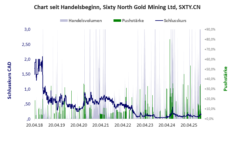 Sixty North hat ein schlechtes Scoring in Klasse D. Es ist ein mickriger Pennystock mit einem riesigen Kursverlust. Das Gesamtvermögen ist überschaubar, die Vermögenswerte scheinen nicht werthaltig zu sein, der Umsatz ist nicht existent, die Ertragslage extrem verlustreich, die Geldverbrennung erträglich.